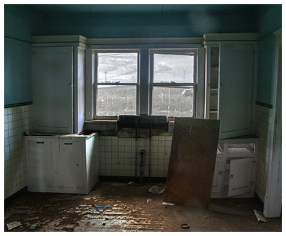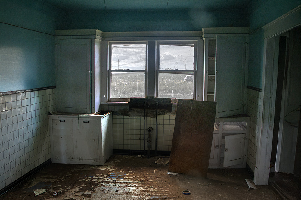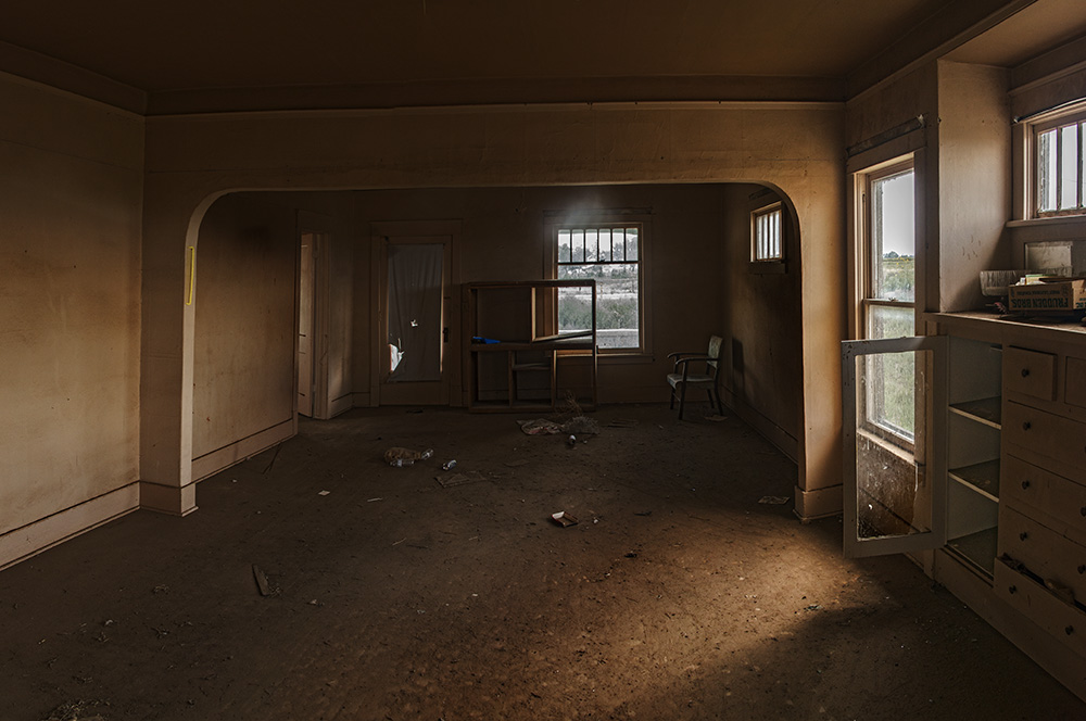 I knew there was an abandoned house on the way to the National Park but I had no idea it was much more than that.There were several buildings in addition to the main house and the fence had an opening with no warning signs. I circled around to the main building and entered through the open back door. For reasons that were not rational, I called out asking to come in.